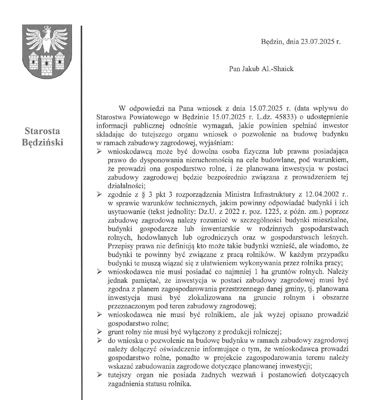 Wystąpiliśmy do wszystkich starostw i gmin w Polsce z pytaniem o szczegółowe kryteria dotyczące zabudowy zagrodowej.