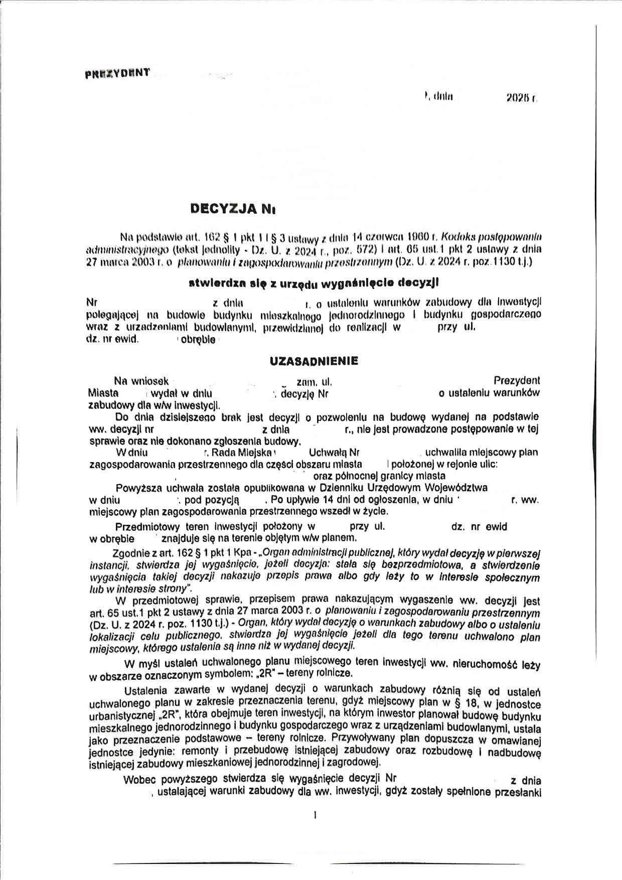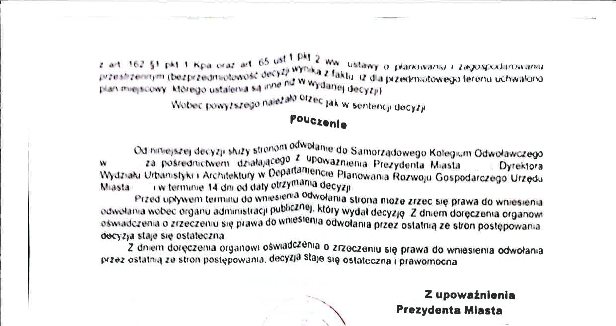 1. PRZYPADEK: Decyzja o warunkach zabudowy nie jest ostateczna