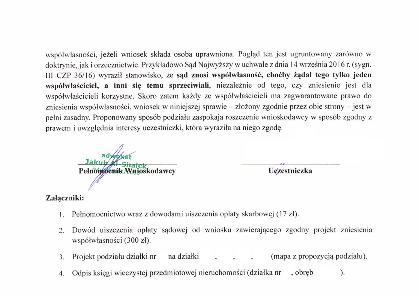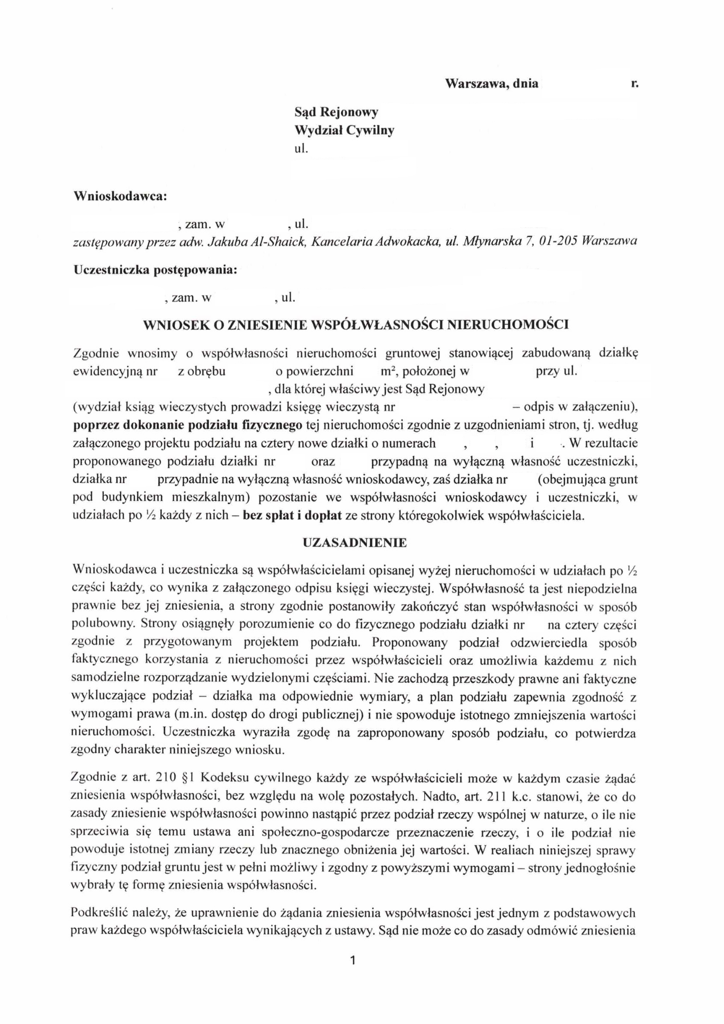 Przykładowy wniosek o zniesienie współwłasności: